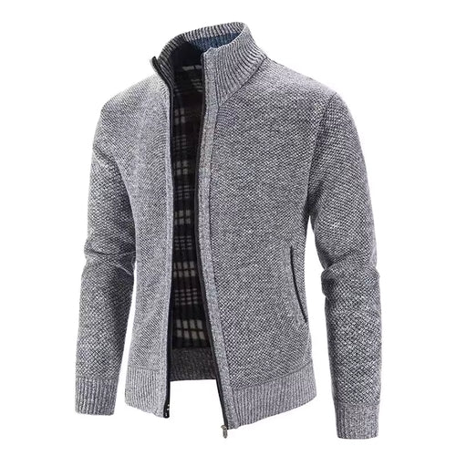 Casual Full-Zip Knit Cardigan with Ribbed Cuffs